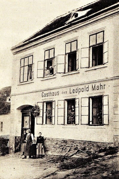 snímek z roku 1904. Silnice před domem byla jediná spojovací cesta mezi horními a dolními Konicemi.